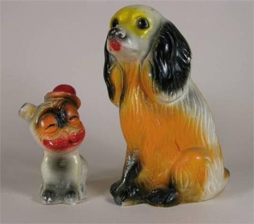 Two chalkware carnival prizes including one small 7 inches and one large 11 inches dog figurals in good condition.