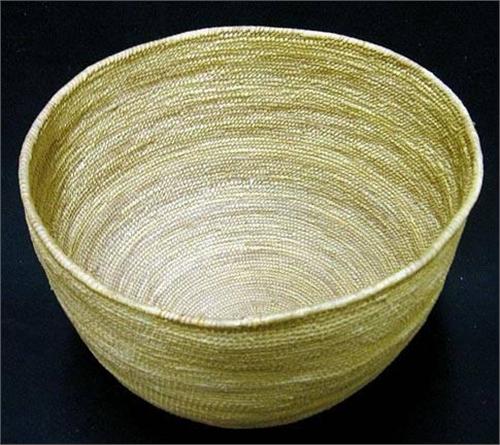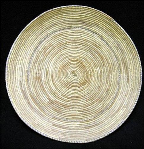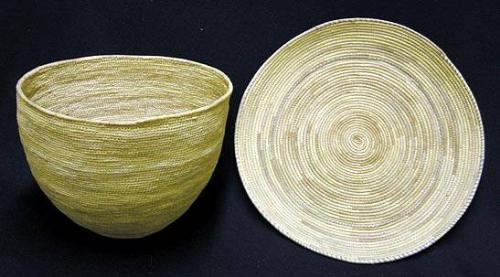 Two coiled baskets; the first in bowl form measures 11" high x 14" diameter; the second in round platter form measures 1 1/2" high x 18" diameter; early 20th C. (no visible defects)