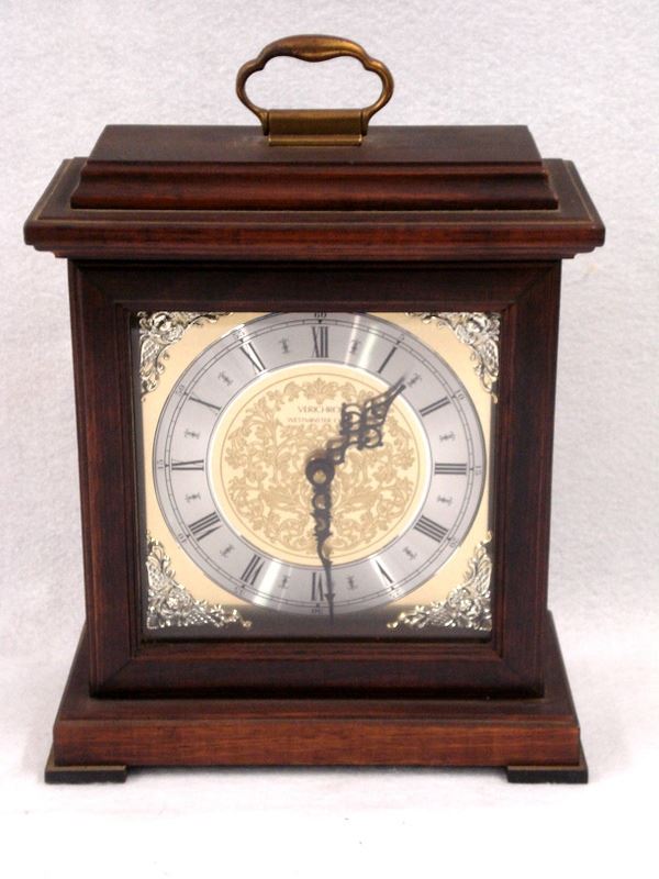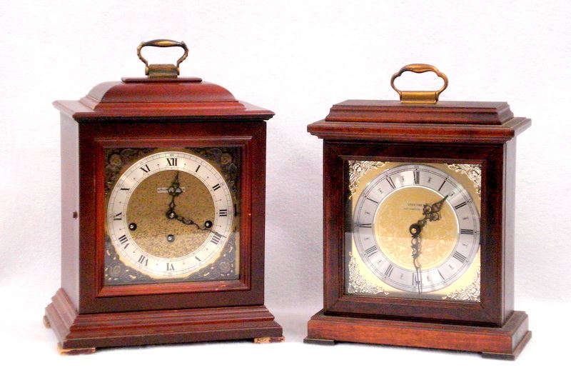 Two contemporary bracket clocks with Westminster chimes including an 8 day Seth Thomas with a German Hermle movement stamped Legacy 3W on instructions panel - several light scratches to case but overall in very good condition; and a Verichon battery operated clock in very good condition.