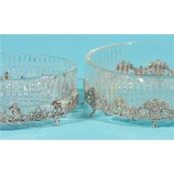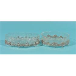 Two crystal containers, oval resp. round, with silver-plated fittings of putti and roses, dim. 16 x 10 cm., h. 4,5 cm., resp. diam. 14 cm., h. 5 cm. (2x)