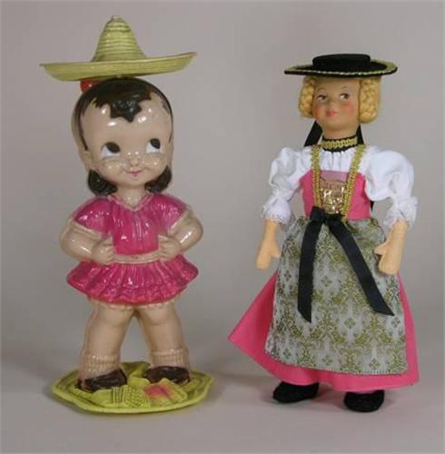 Two dolls including one celluloid wind-up, approx. 9 inches tall. Good Cond.