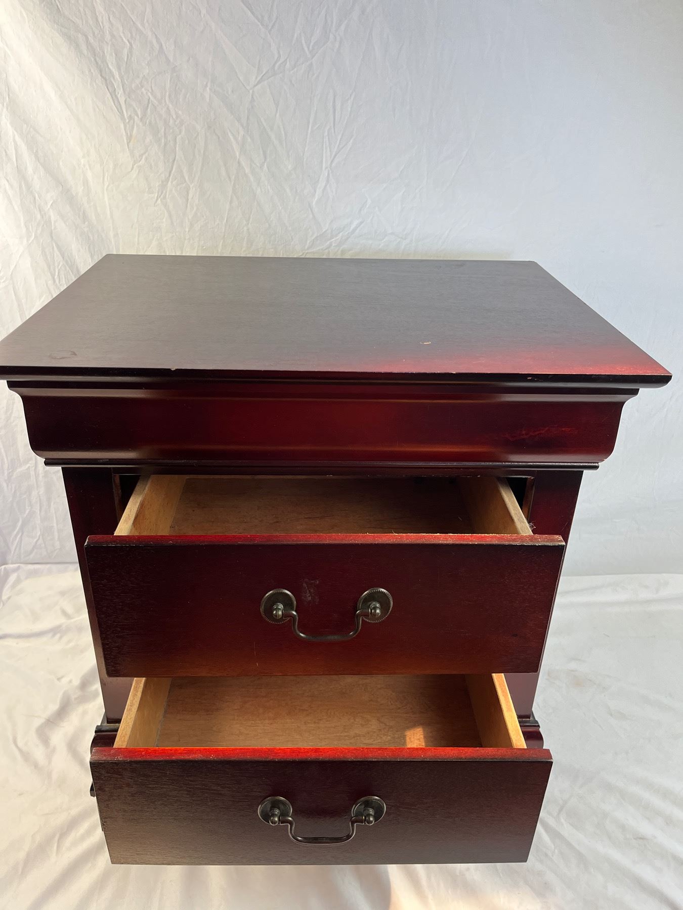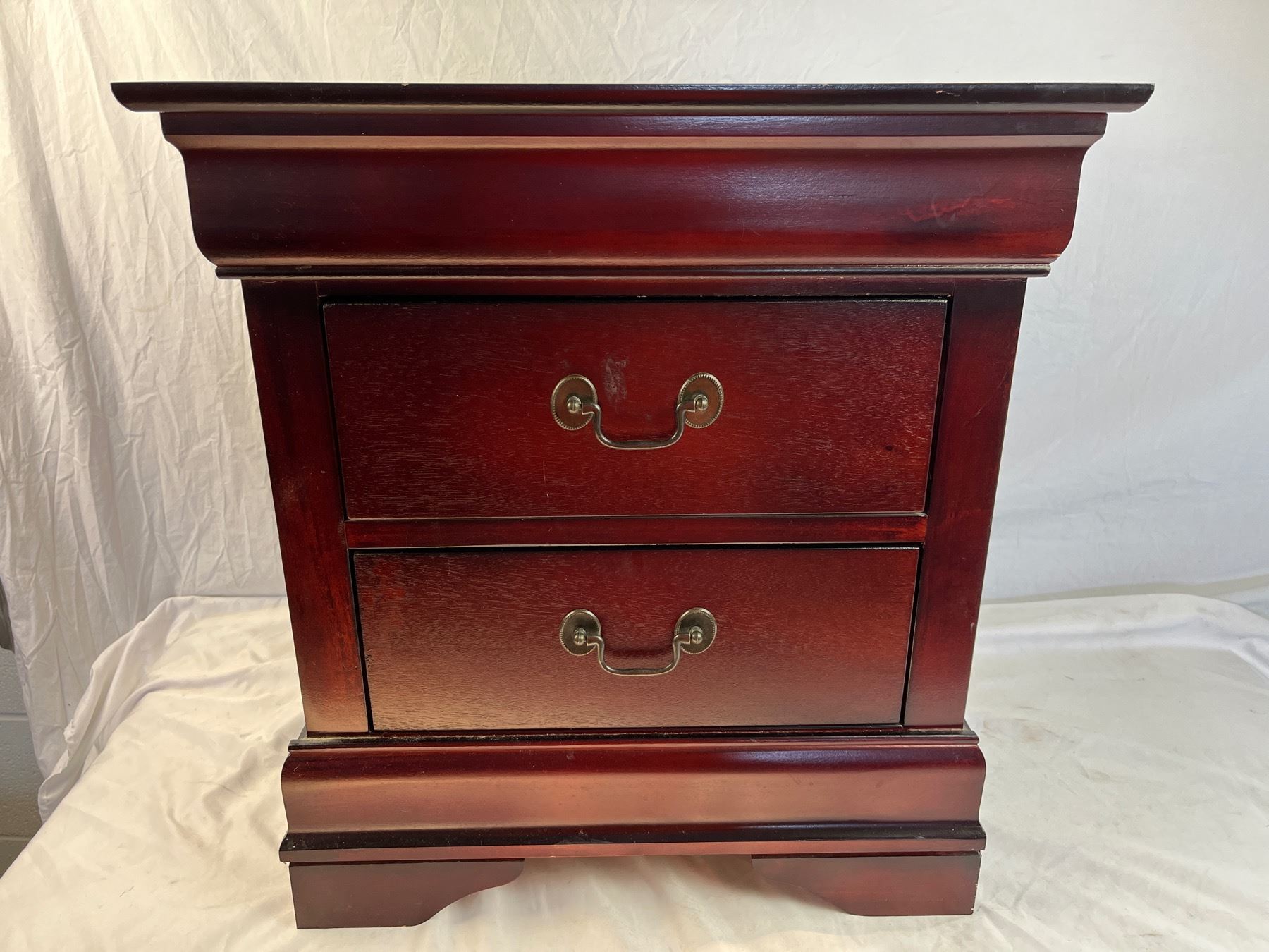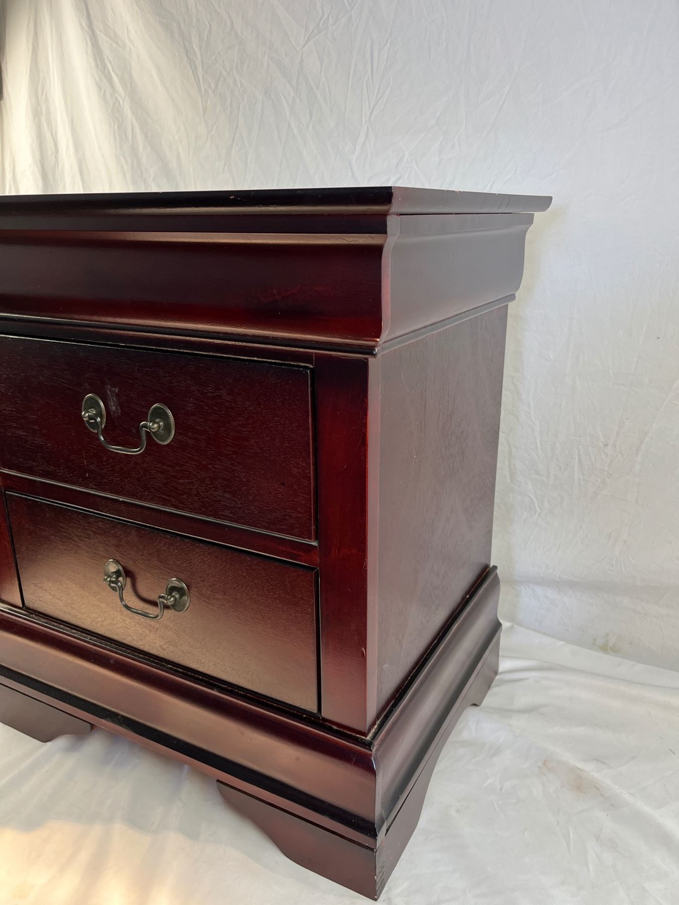Measuring 22"x16" with a height of 24". Small chip on top rear corner.