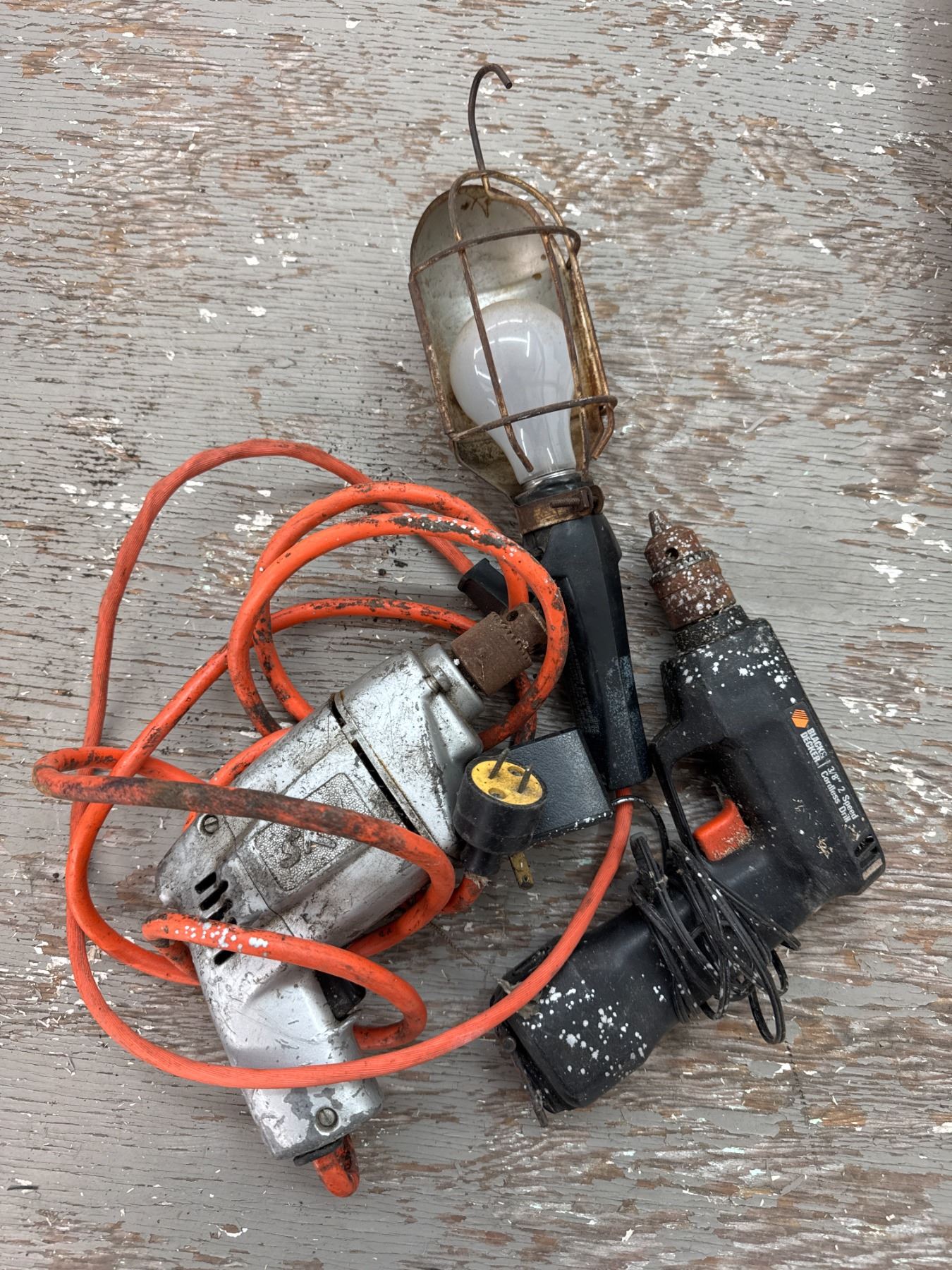 Two drills and a trouble light