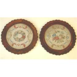 Two early 19th century pole screen panels, worked with petit point floral studies, in fluted rosewood frames 10ins diameter £200-300