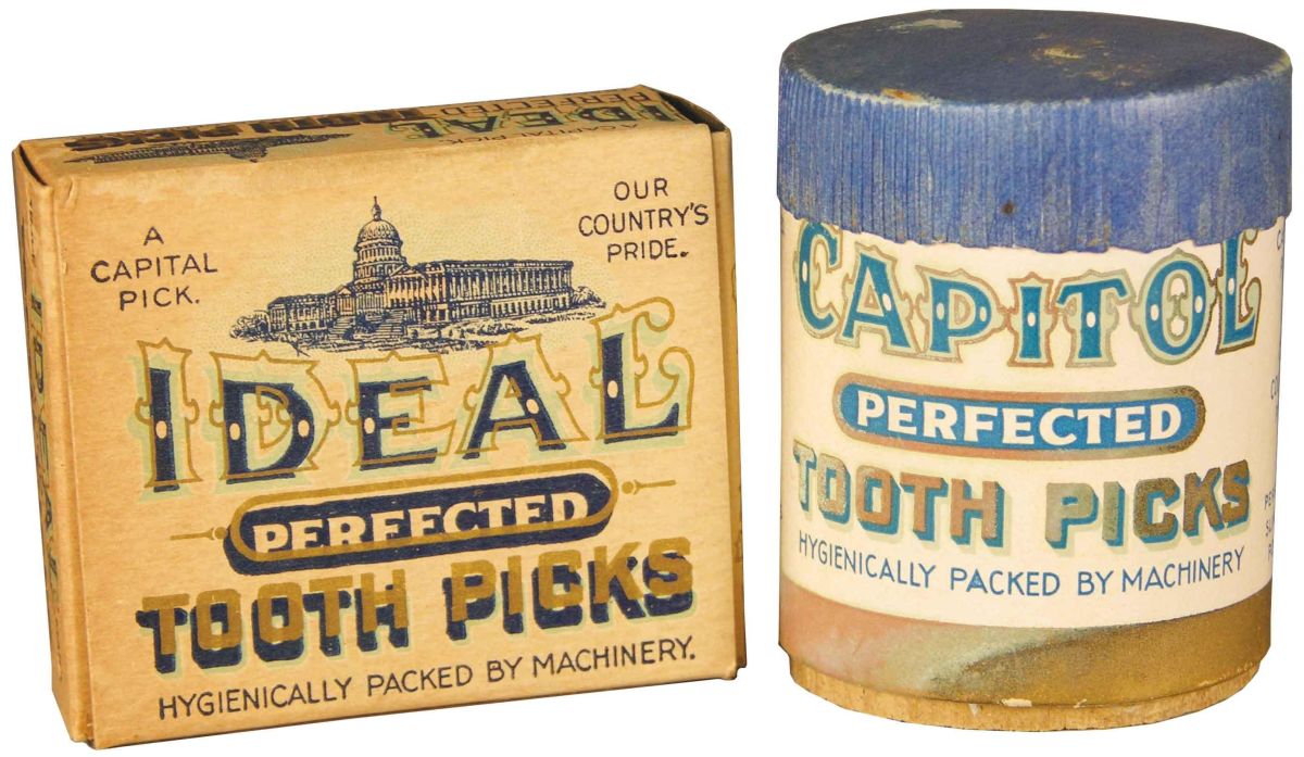 Two early boxes of tooth picks including Ideal and Capitol. Both boxes filled with original picks. Start Price $20
