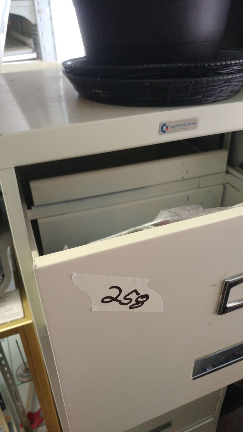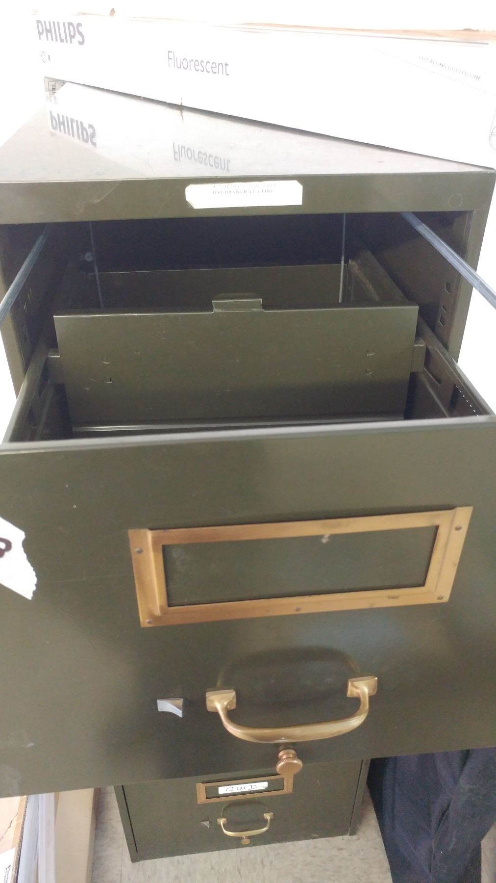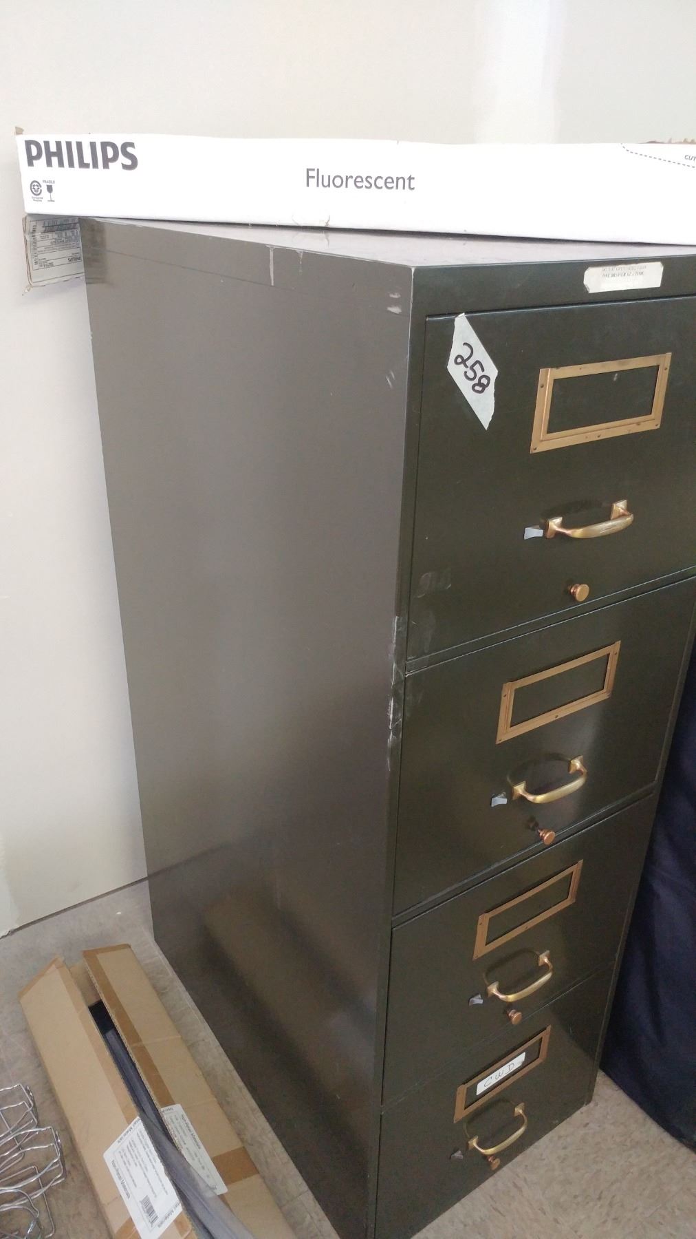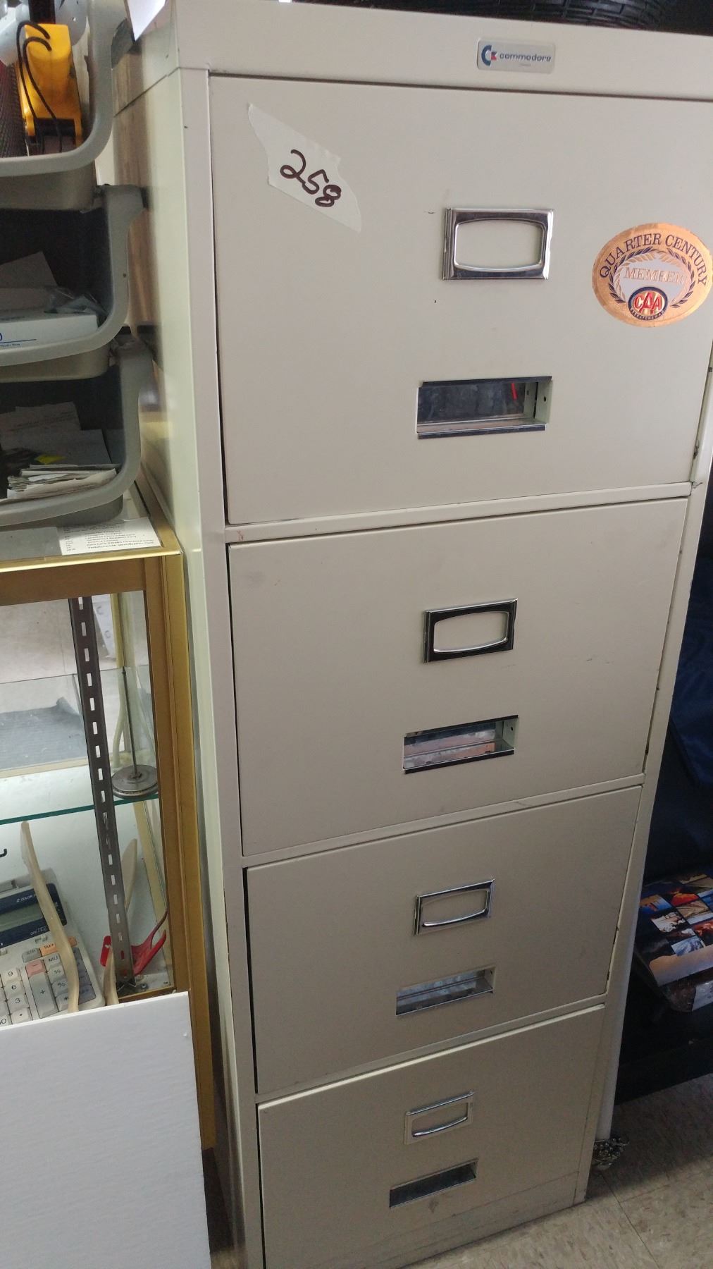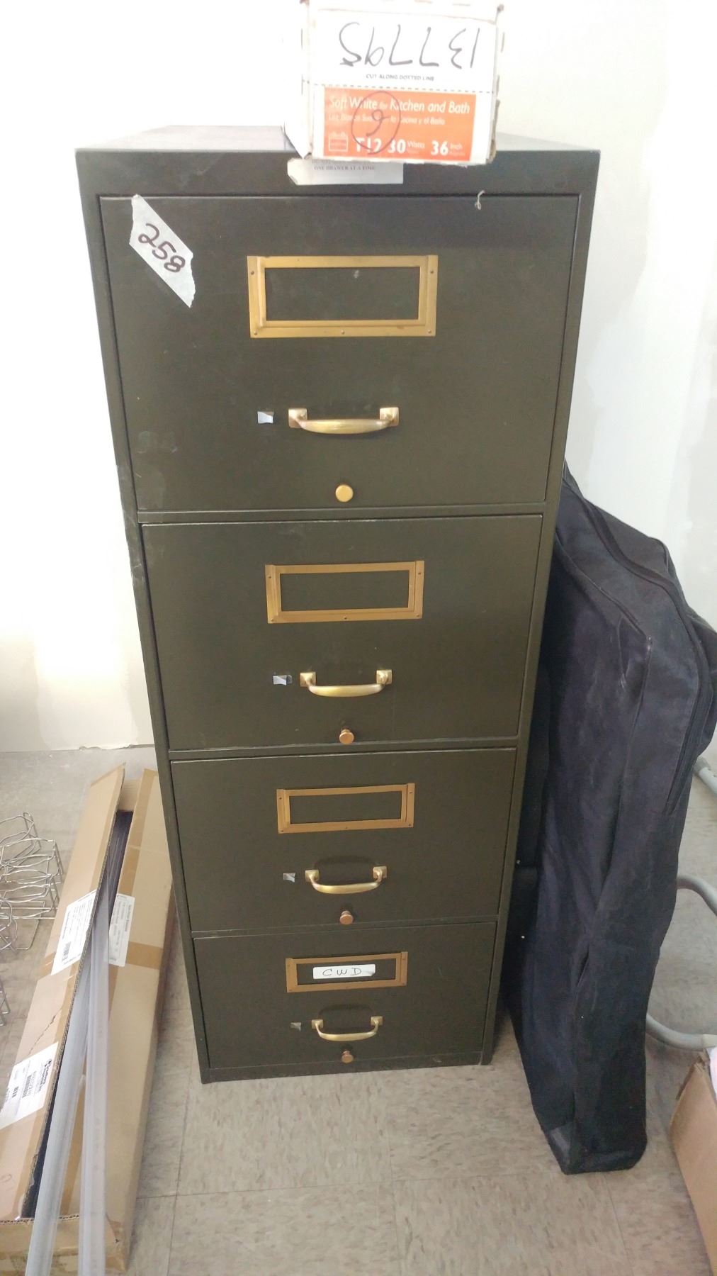 Two filing cabinets (one 50.5"T x 27.5"D & one 52"T x 24"D)