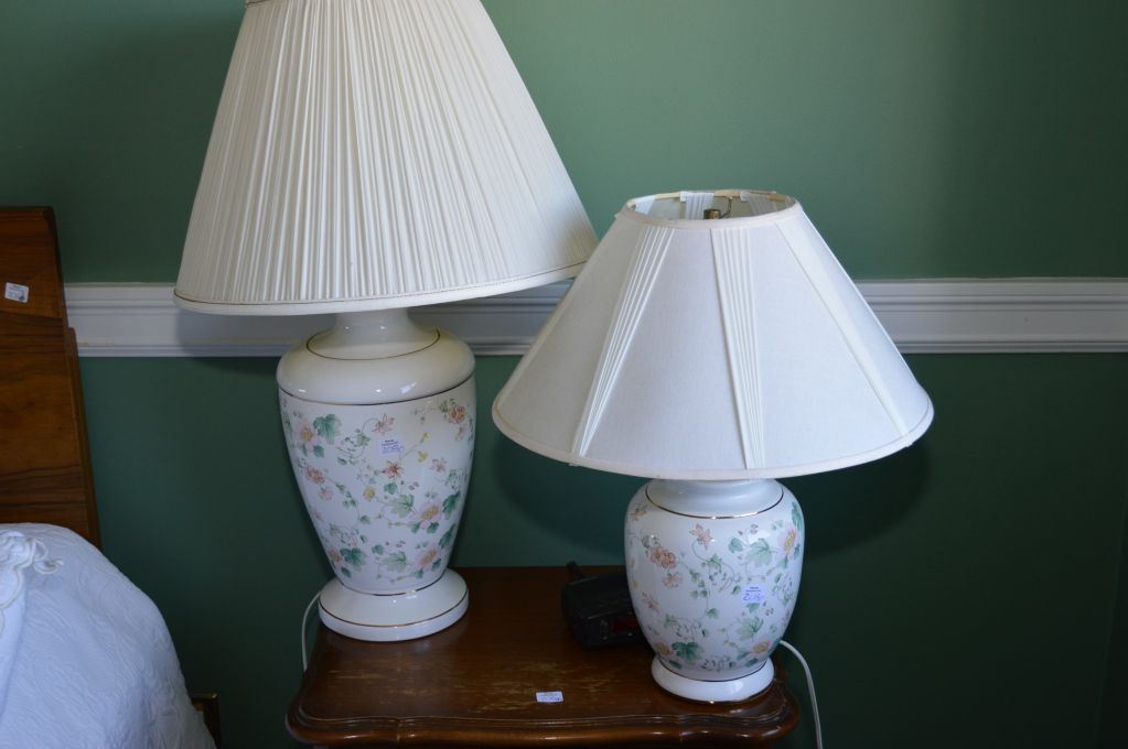 Two floral motif porcelain table lamps