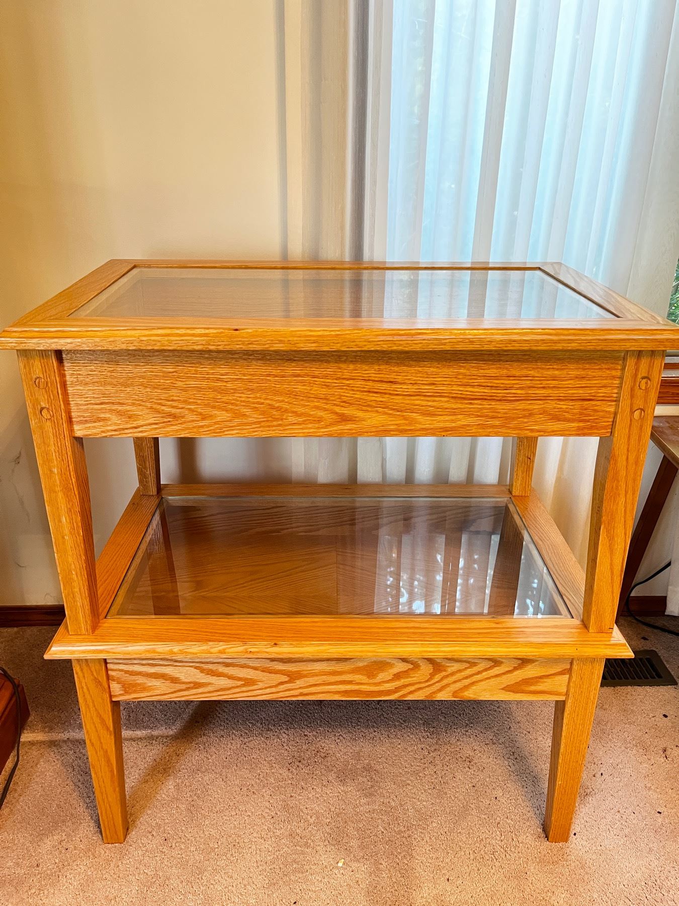 measuring 17x31x19" with 4"deep internal compartment for displaying curios.