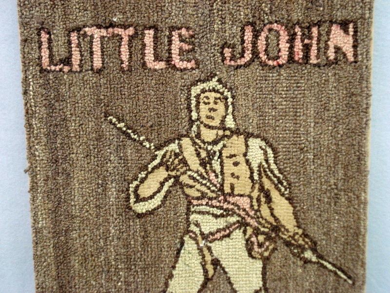 Two hooked rugs including one with a sailing ship in center with a bird in one corner - 20" x 39" - excellent condition; together with a rug entitled "Little John" (mounted) - 15.5" x 34" - excellent condition. Both mid-20th century or earlier.