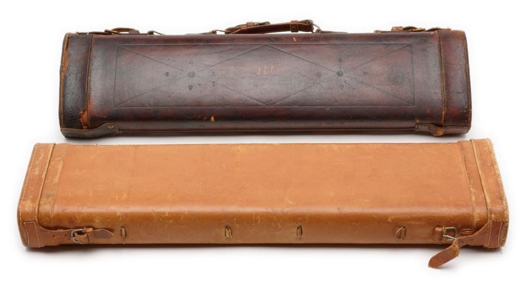 Two leather shotgun hard cases, one marked “J.C.C.”; both in overall fair to good condition and in need of minor restoration. Est.: $75-$150.