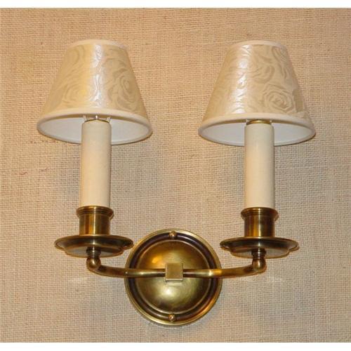 A brass two light scone in antique brass finish.