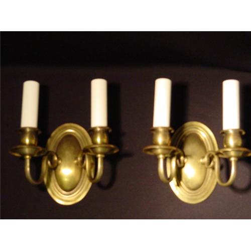 Circa 1930 A pair of two light bronze sconces .Please email us if you would like additional photos or more information.Thanks antique gallery.