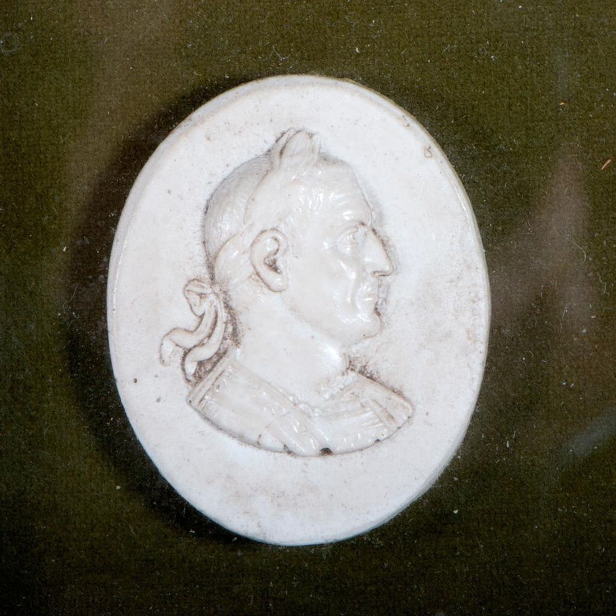 Two framed 19th century plaster medallions of Roman emperors measuring 6 inches high x 7 wide x 2 deep.