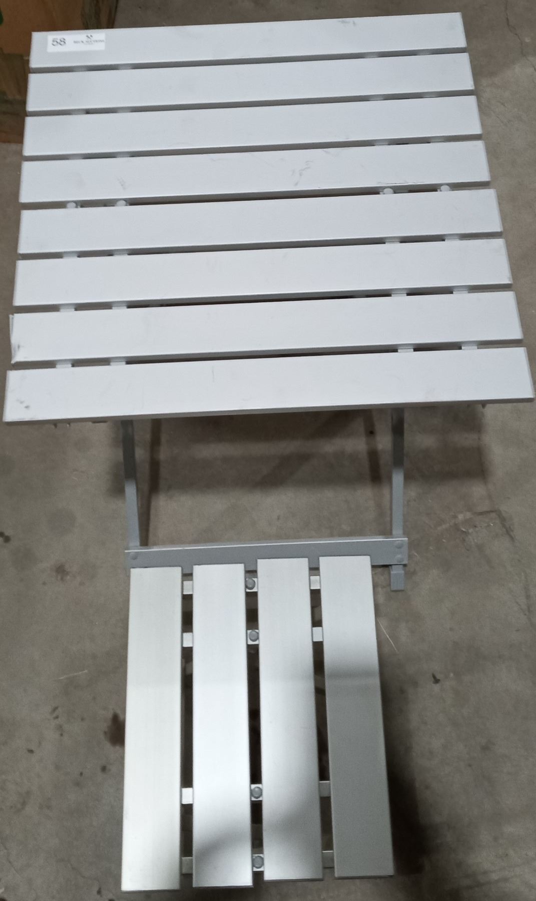 Two metal foldable tables; perfect for relaxing on a hot summer day.