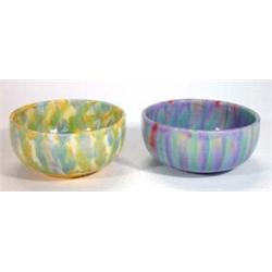 Two multi coloured glazed Brannam bowls, impressed marks to base, 15cm diameter…