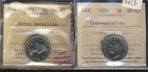 Two nice ICCS graded coins. Includes a 1951 Commemorative MS62 and a 1964 Extra Water Lines MS63.