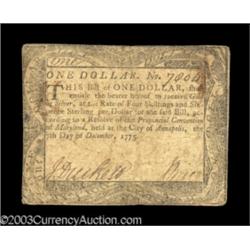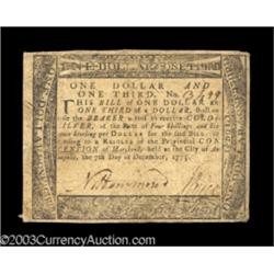 <TABLE cellSpacing=0 cellPadding=0 width="100%" bgColor=#000000 border=0><TBODY> <TR><TD width="100%"><TABLE cellSpacing=1 cellPadding=3 width="100%" border=0><TBODY><TR><TD width="100%" bgColor=#79735c><FONT face=arial color=#ffffff size=3><B>Description</B> </FONT></TD></TR><TR><TD width="100%" bgColor=#ffffff><FONT face=arial size=2><B>Two nice Maryland notes.</B></I> A $1 and a $1 1/3, both from the December 7, 1775 issue, both grading <B>Very Fine.</B></I> (175-up ) (2 notes) </FONT></TD></TR></TBODY></TABLE></TD></TR></TBODY></TABLE><BR><TABLE cellSpacing=0 cellPadding=0 width="100%" bgColor=#000000 border=0><TBODY><TR> 2 notes Important notice: Heritage usually auctions material at the rate of 200-250 lots per hour. On some occasions eBay Live bid software or the Internet may not be able to keep up with the pace of the auction. We recommend placing a realistic absentee bid now as insurance to avoid disappointment. Occasionally the auctioneer may eliminate or reject an eBay Live bid, and the auctioneer may also reopen a lot after the close of the eBay live bidding (usually because we missed an audience bid), and may reject your bid even if it shows you as the winning bidder. By bidding via eBay Live, you agree that Heritage may award the lot to another bidder at its sole discretion under the circumstances described above or any other reasonable circumstances. Also please note that all Heritage lots purchased through eBay Live carry a 20% Buyer's Premium. Please make sure you read the Terms and Conditions before you bid.</TR></TBODY></TABLE>