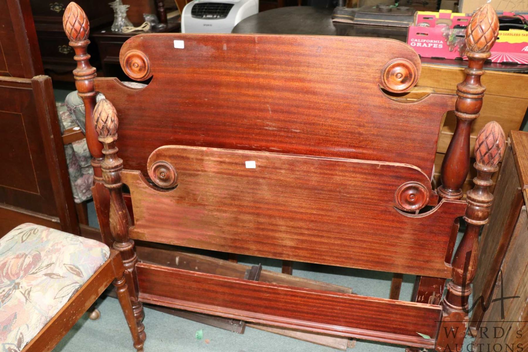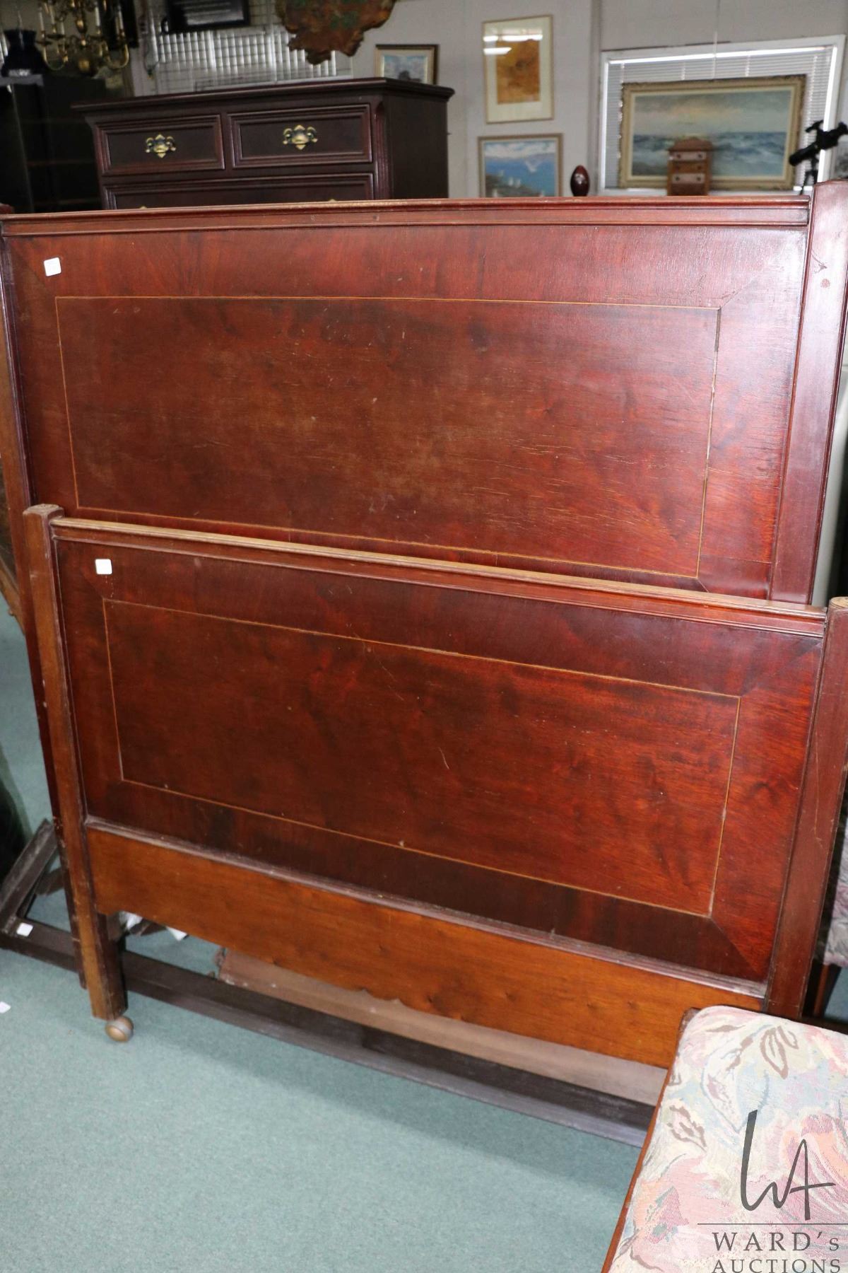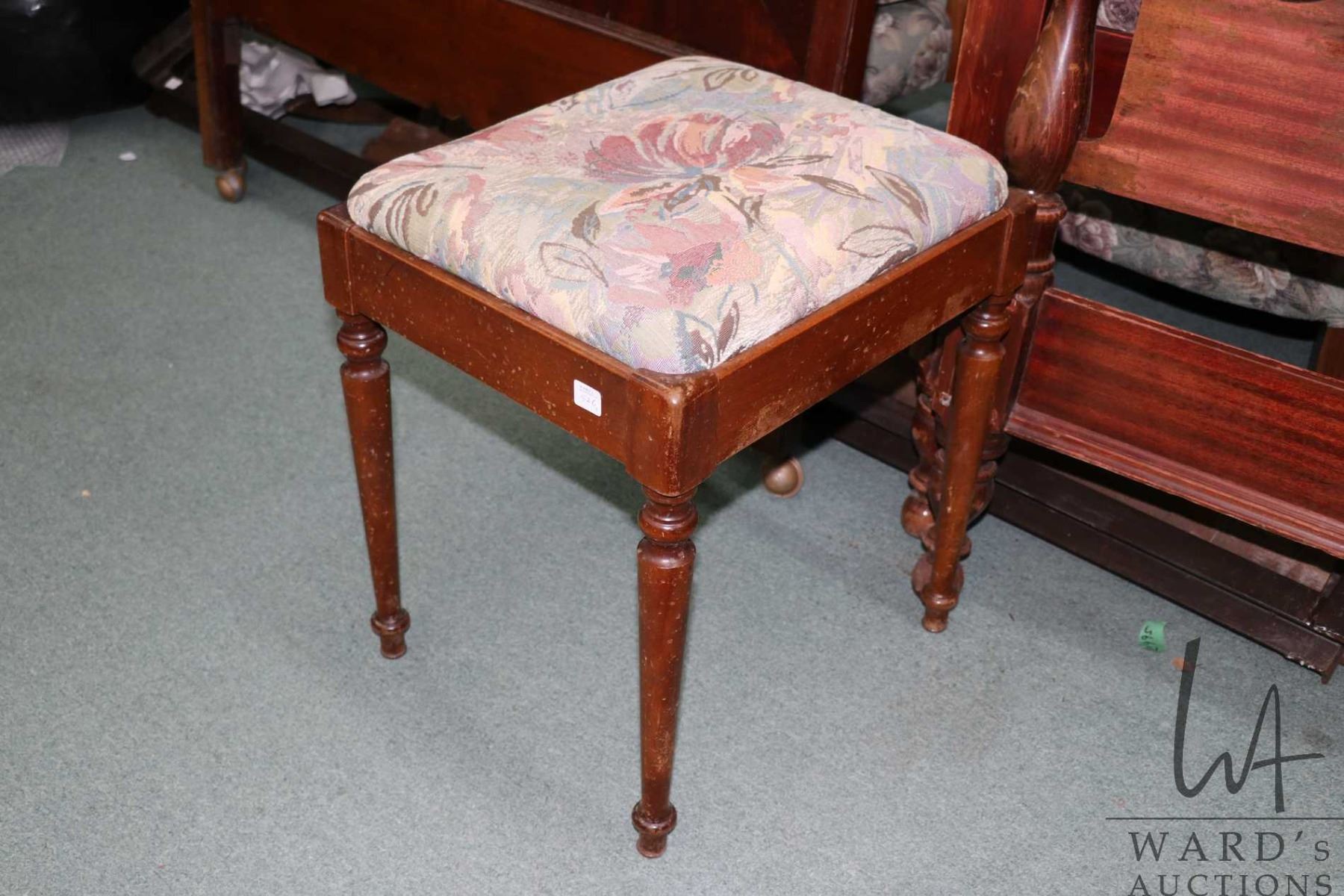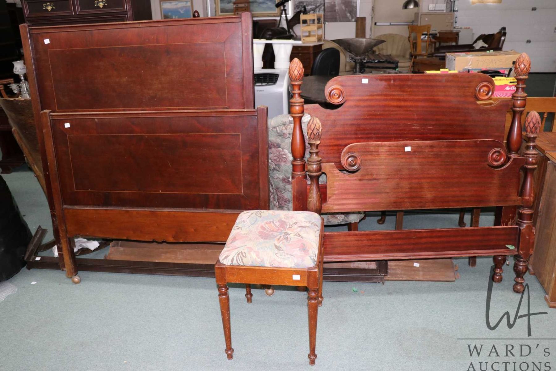 Two non-matching cot sized headboards and footboard and a vanity stool