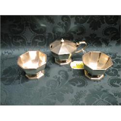 Two octagonal salts and a matching mustard with conforming cover, various hallmarks, c.1918.