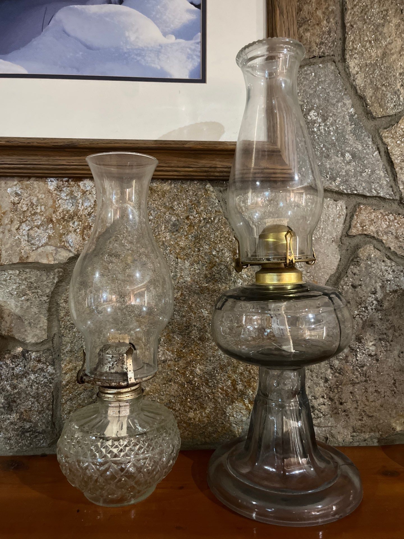 Two oil lanterns, both with glass very unique bases
