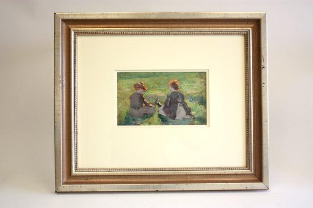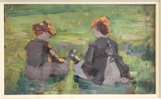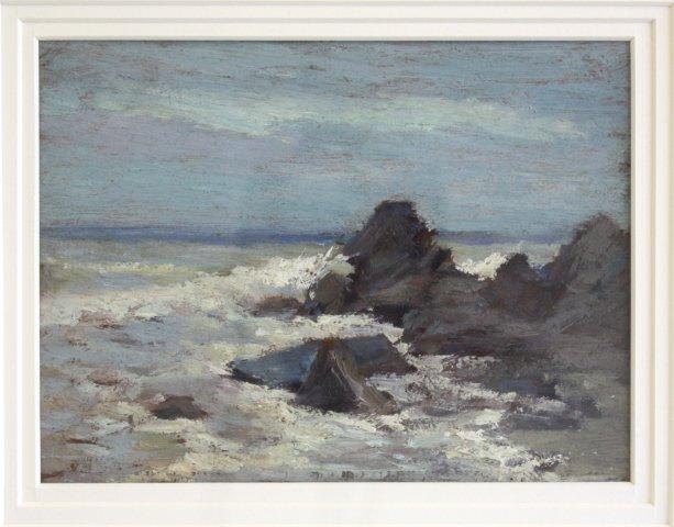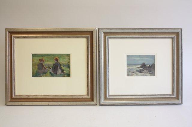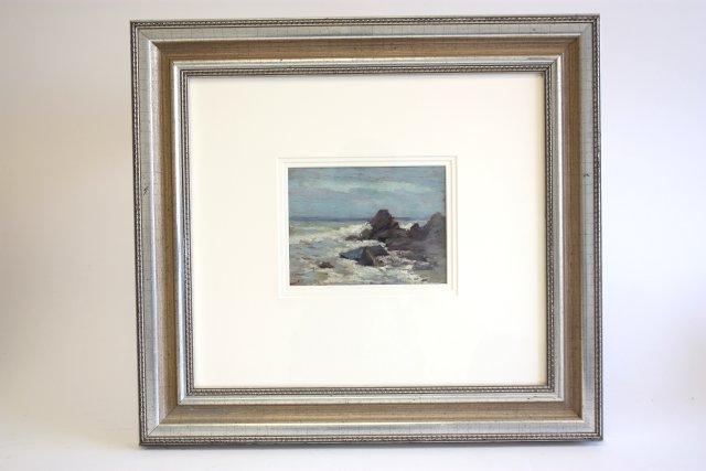 1-6.5" x 10.5" acryllic oil painting "Two Young Children in Fields". 1-6" x 8" oil painting "Waves Against Rocks"