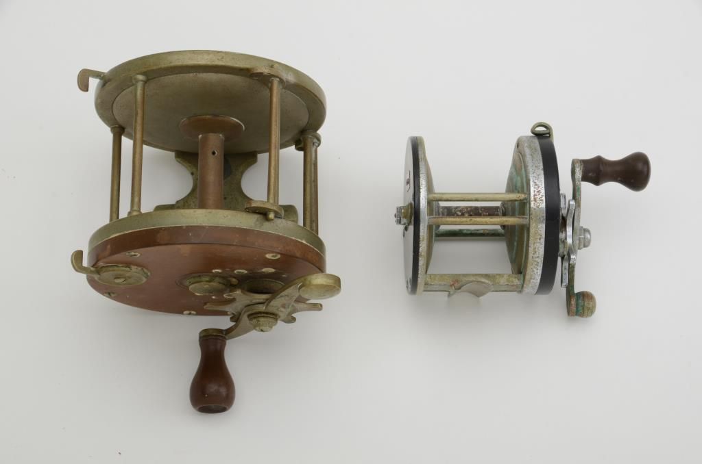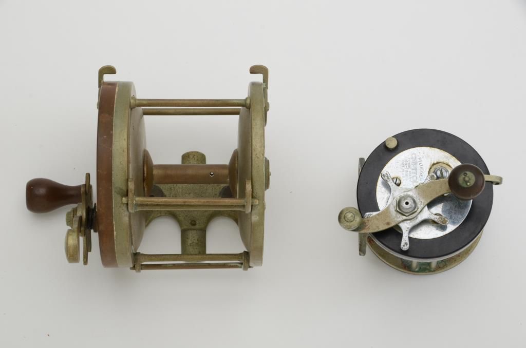 Two old fishing reels including a Pflueger CAPITOL No. 1989 reel in well-used condition and a large Edward Vom Hoff, Maker, of New York; Patent May 20, ’02 in overall fair +, uncleaned condition. Est.: $100-$200.