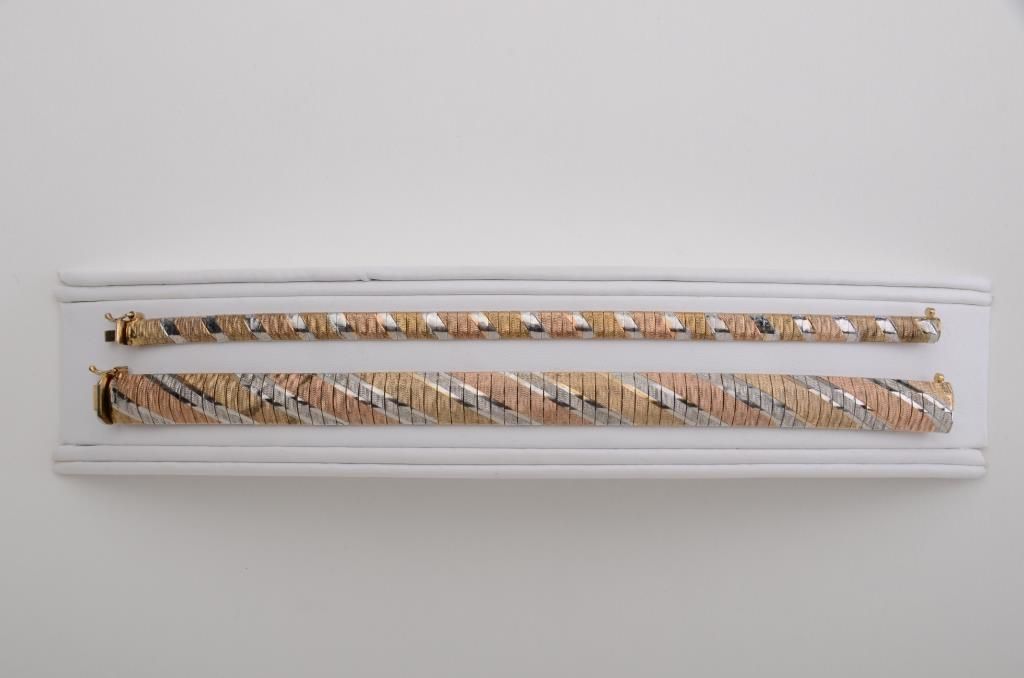 Two omega style bracelets in multicolor vermeil (gold plated) sterling silver. total wt 33.7gms. Est.:$100-200.