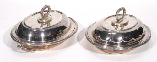 Two oval silver plated entree dishes and covers with detachable handles, one with liner, largest 29c