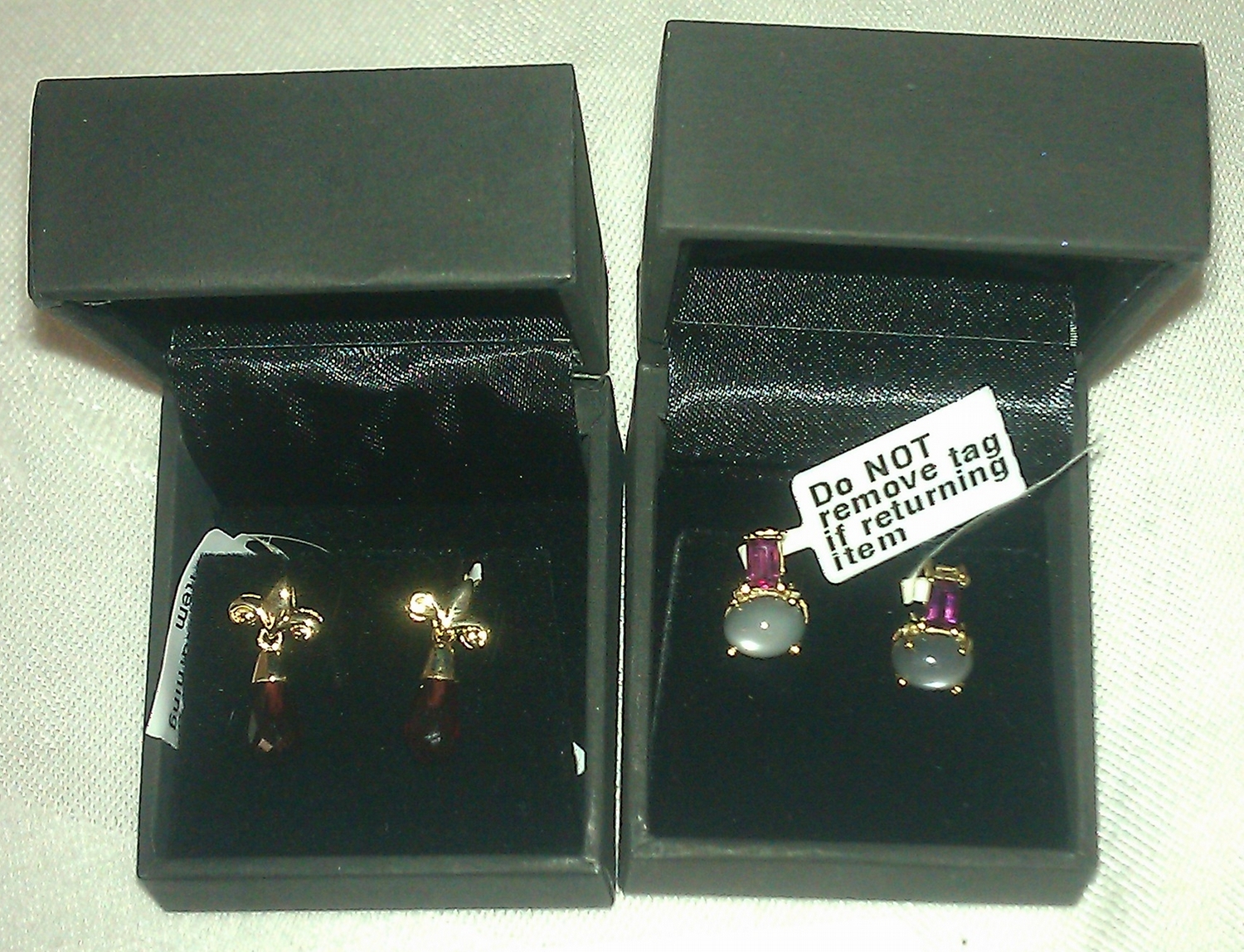 Lot Includes:(2) Pair of yellow gold earrings one w/ moonstone cabochons, one w/ garnets