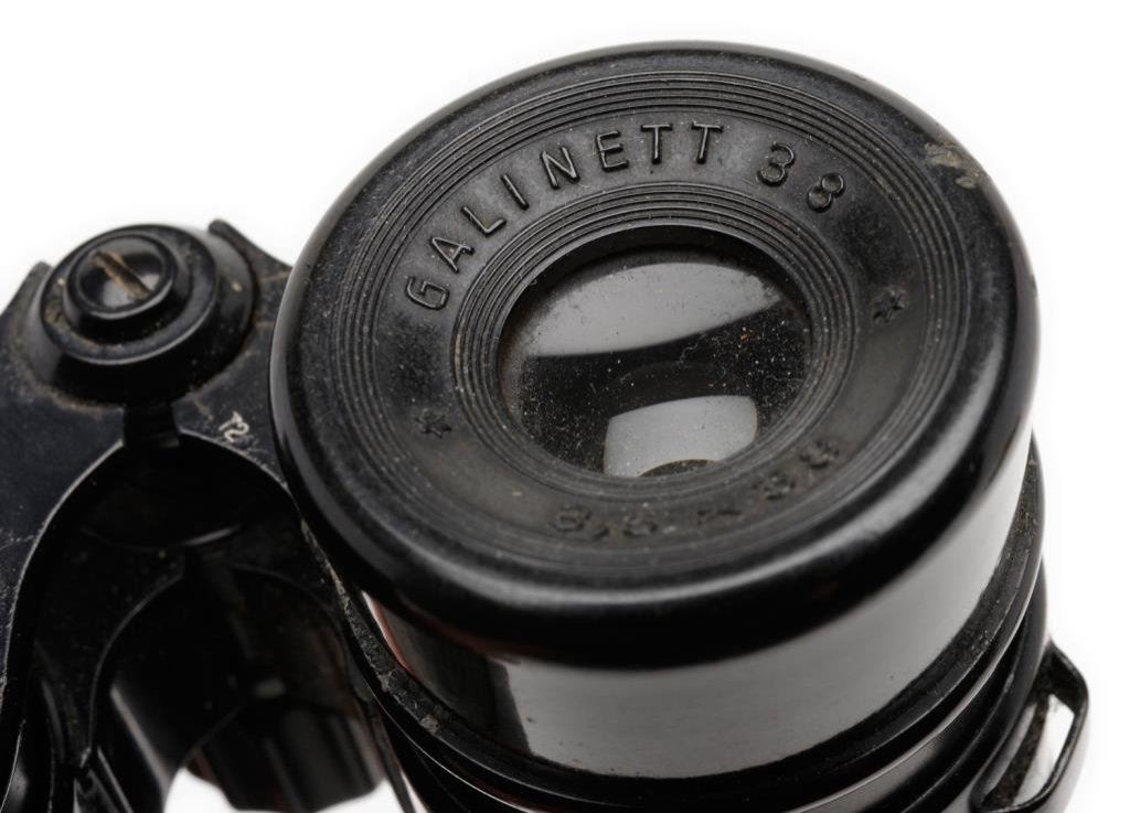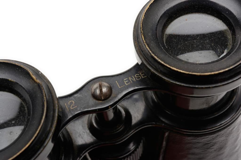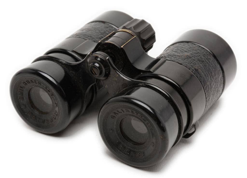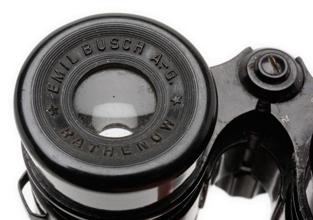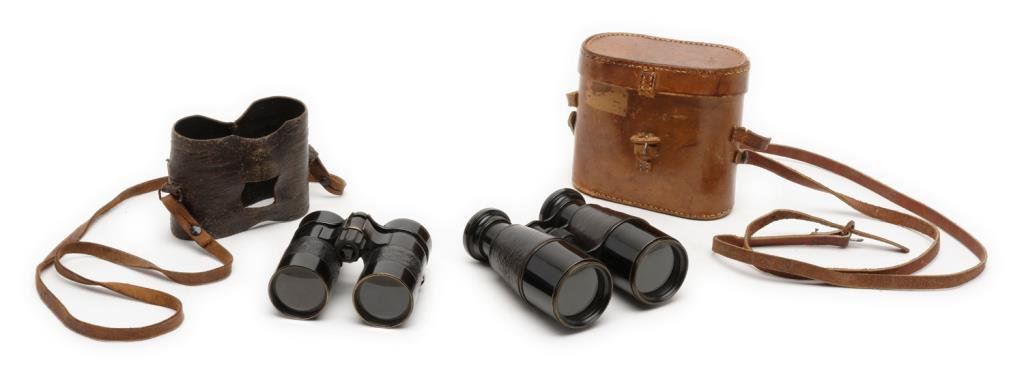 Two pair of vintage adjustable binoculars including one with a leather carrier hard case and the other marked “EMIL BUSCH , RATHENOW” with a soft leather carrier; both with fine optics. Est.: $50-$75.