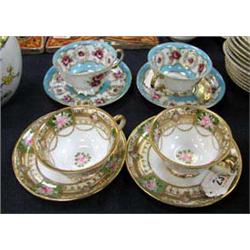 Two pairs of Noritake hand painted cups and saucers decorated with 22kt Gold edging.
