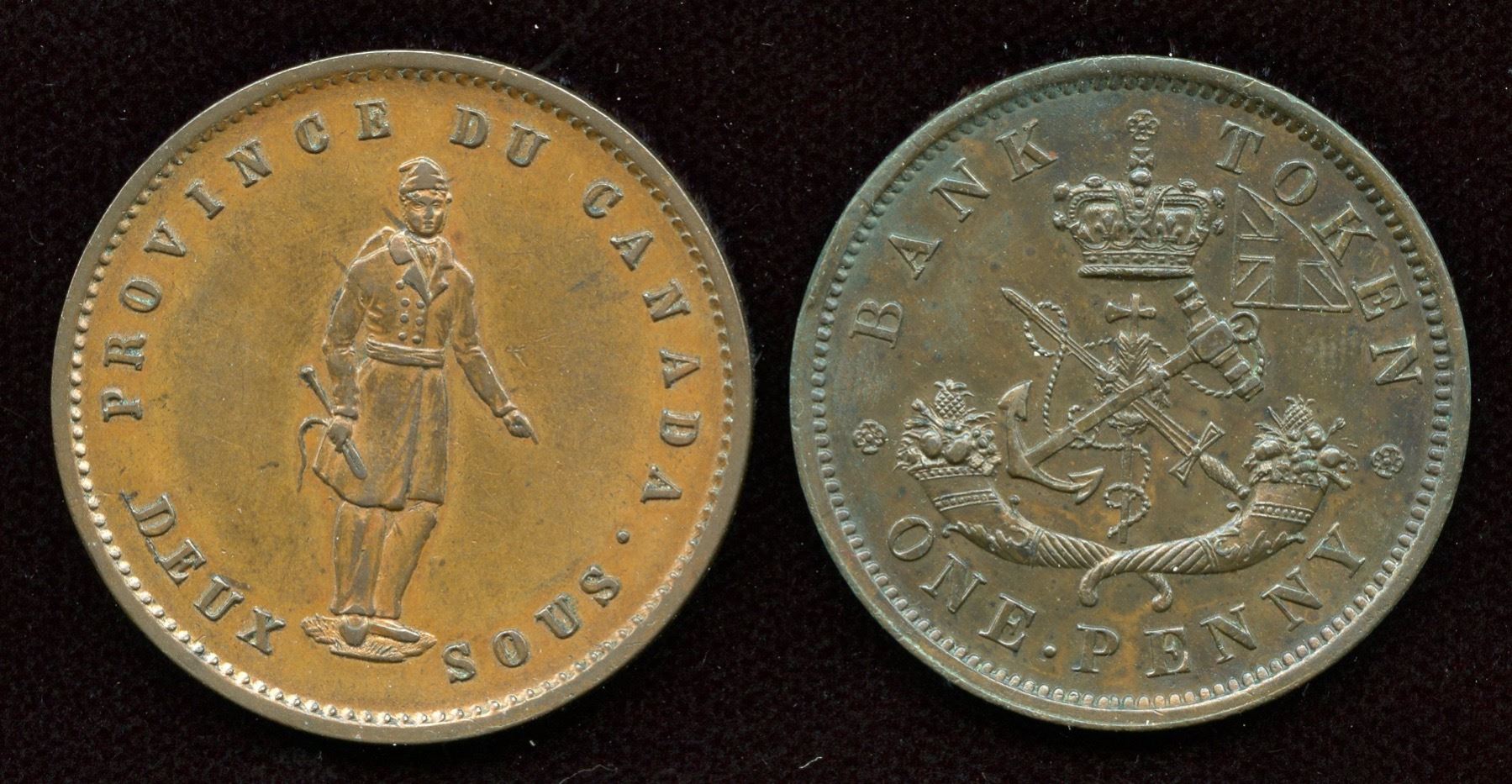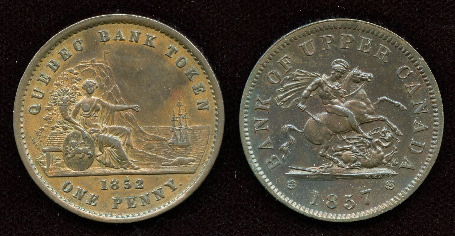 CH PC-4, Quebec Bank, nice EF+; CH PC-6D, Bk. Of UC, AU.