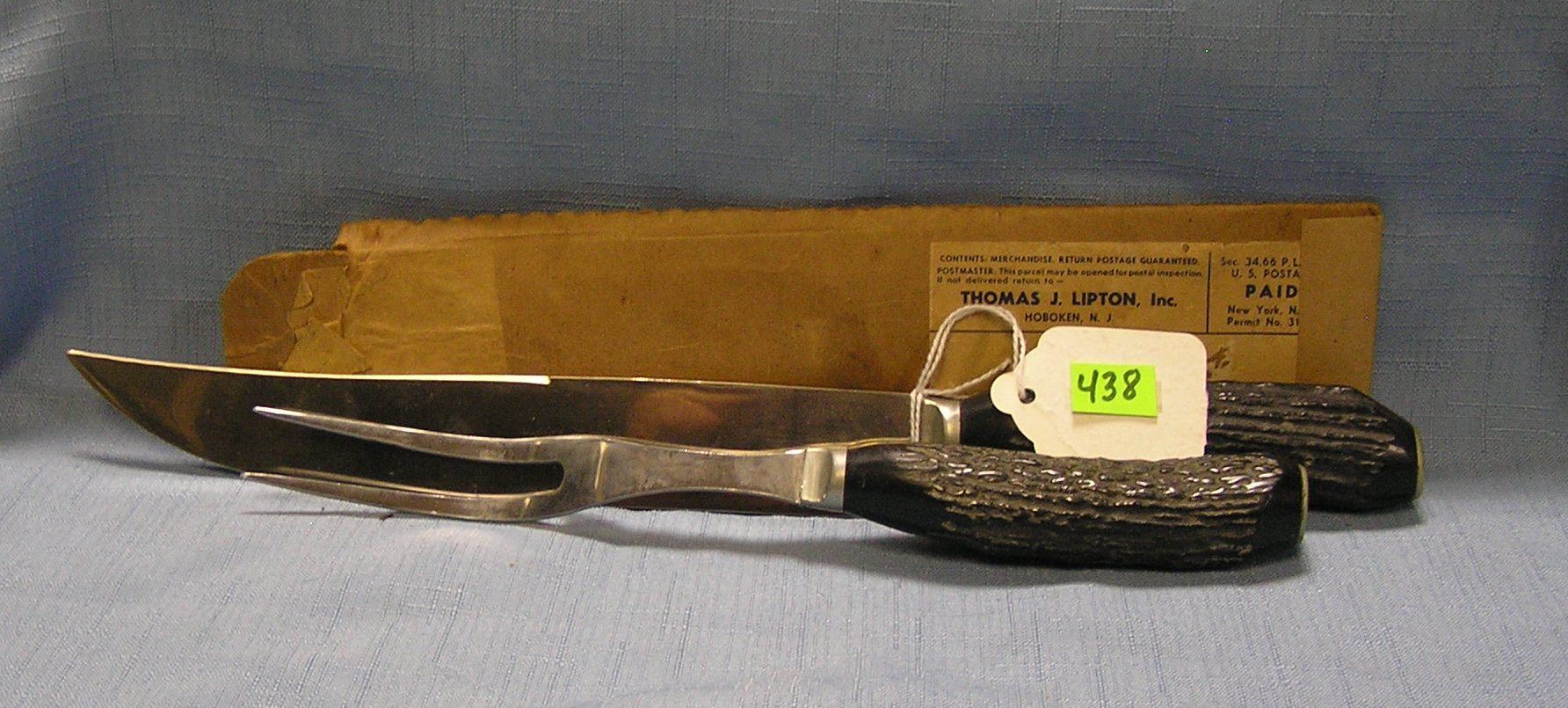 Two piece bone handled carving set with original mailing package est. value $125.00-$175.00