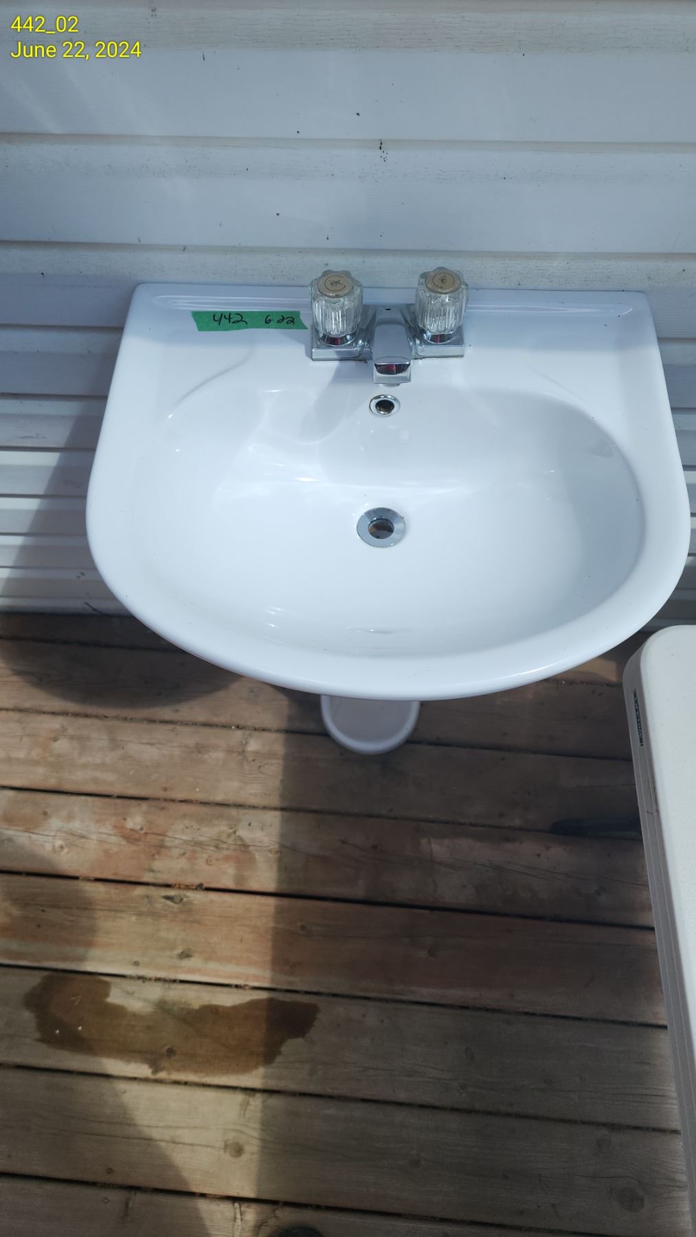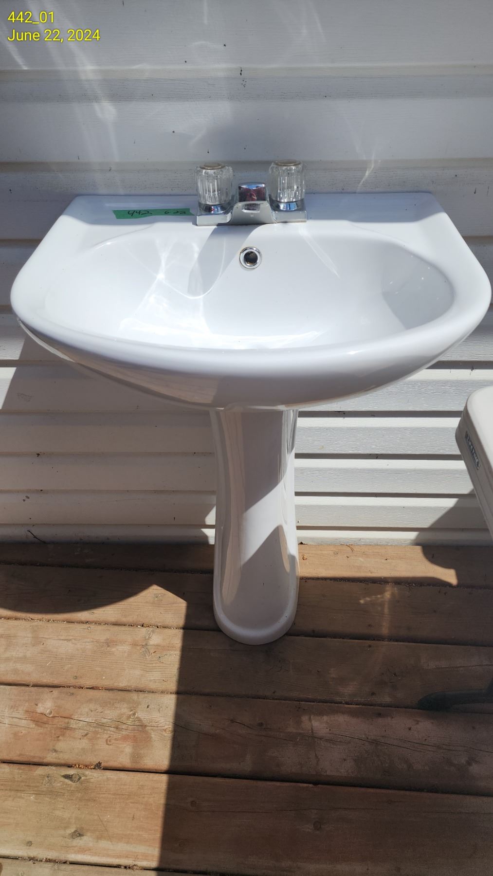 Two piece white pedistal sink with faucet