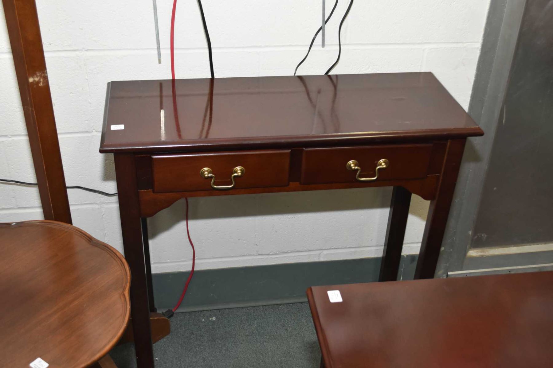 Two pieces of modern furniture including a two drawer console table and modern component stand
