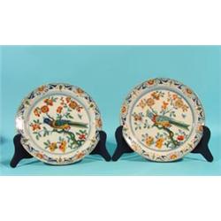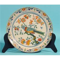 Two polychrome earthenware plates, Bird decor, Makkum, ca. 1920, diam. 24 cm.