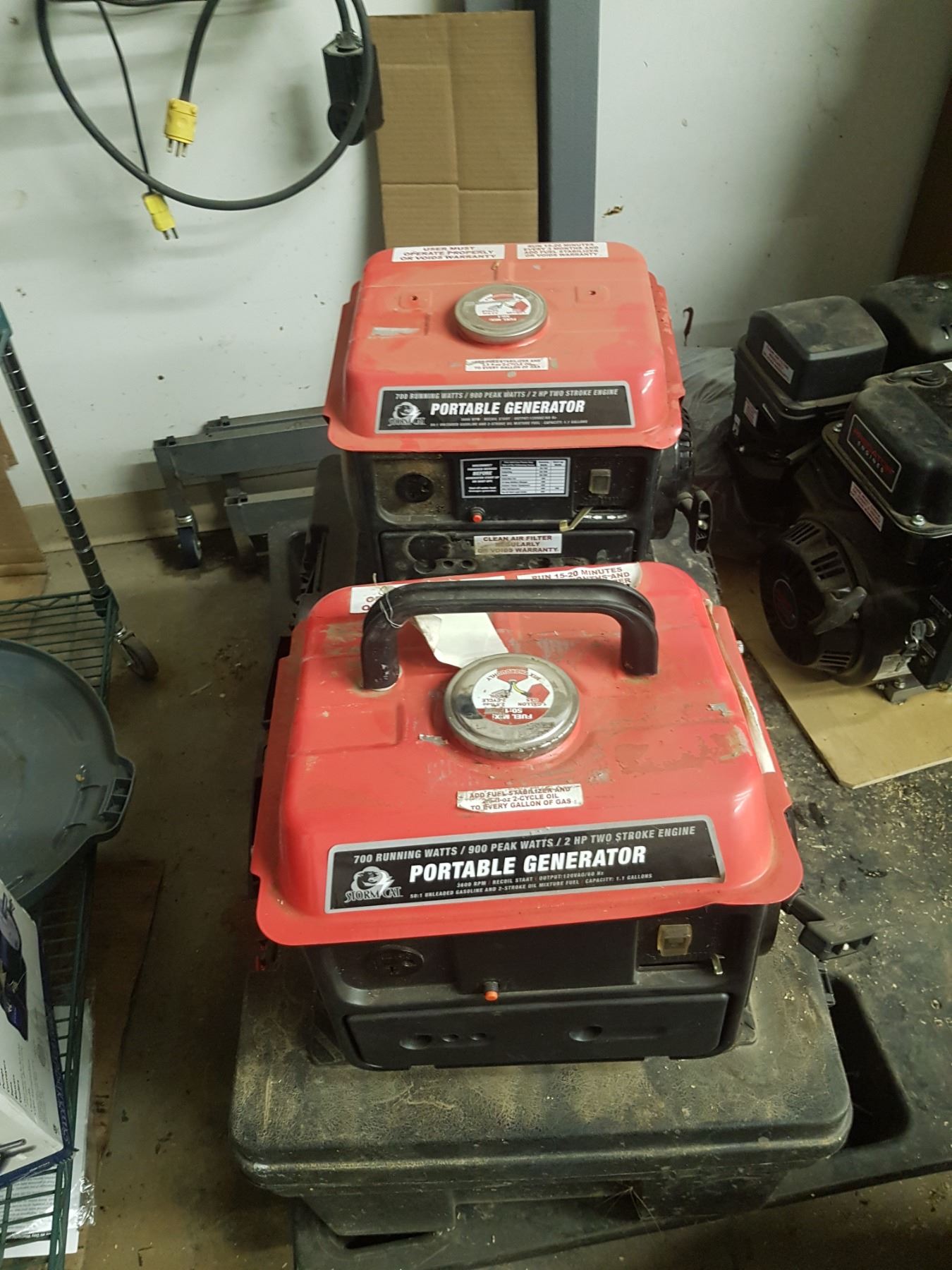Two portable, 2 stroke Generators both units have compression and Spark, Condition of fuel is unknown.