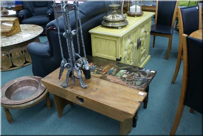 Two primitive benches including one with a tavern scene and a heavy companion set