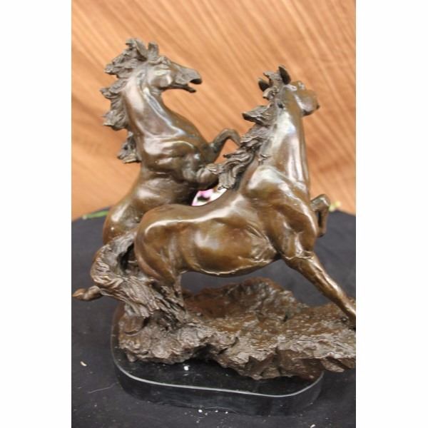 our civilization. With such recognition and accomplishments, a vastand diverse trail of symbol meanings is sure to follow the horse’s rich history with humankind. Some that are seen in this sculpture are power, grace, beauty, nobility, strength and freedom. The sculpture was cast using the age-old method of lost-wax casting and stained with a brown patina finish for perpetuation.