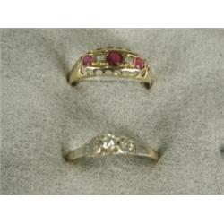 Two rings: a five stone ruby and diamond half hoop, and a diamond solitaire, sizes I 1/2 and P Es...
