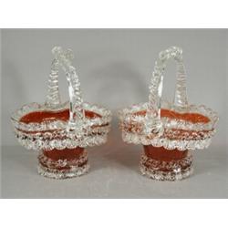 Two ruby glass baskets (one with slight damage), 26cm high Est. 150/200