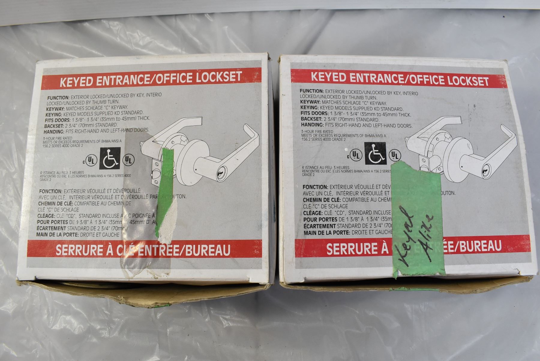 Two sets of door handles + deadbolts (say keyed alike but missing keys)