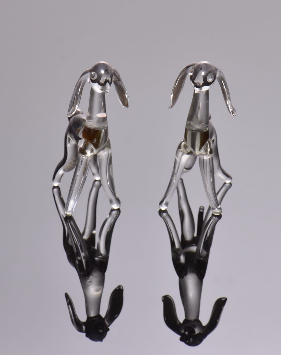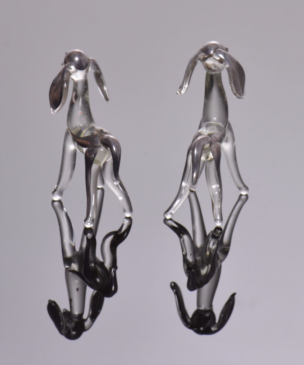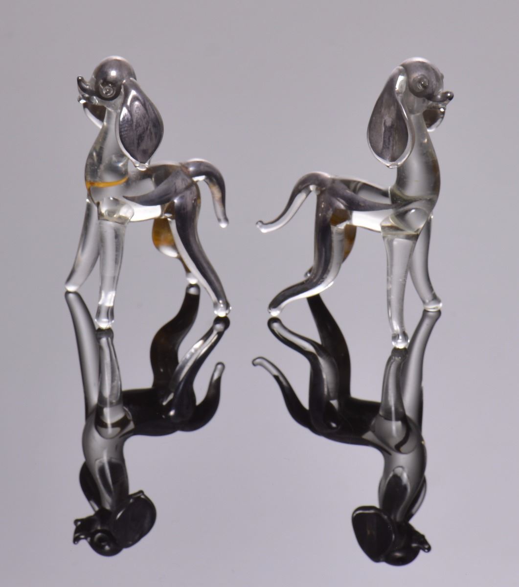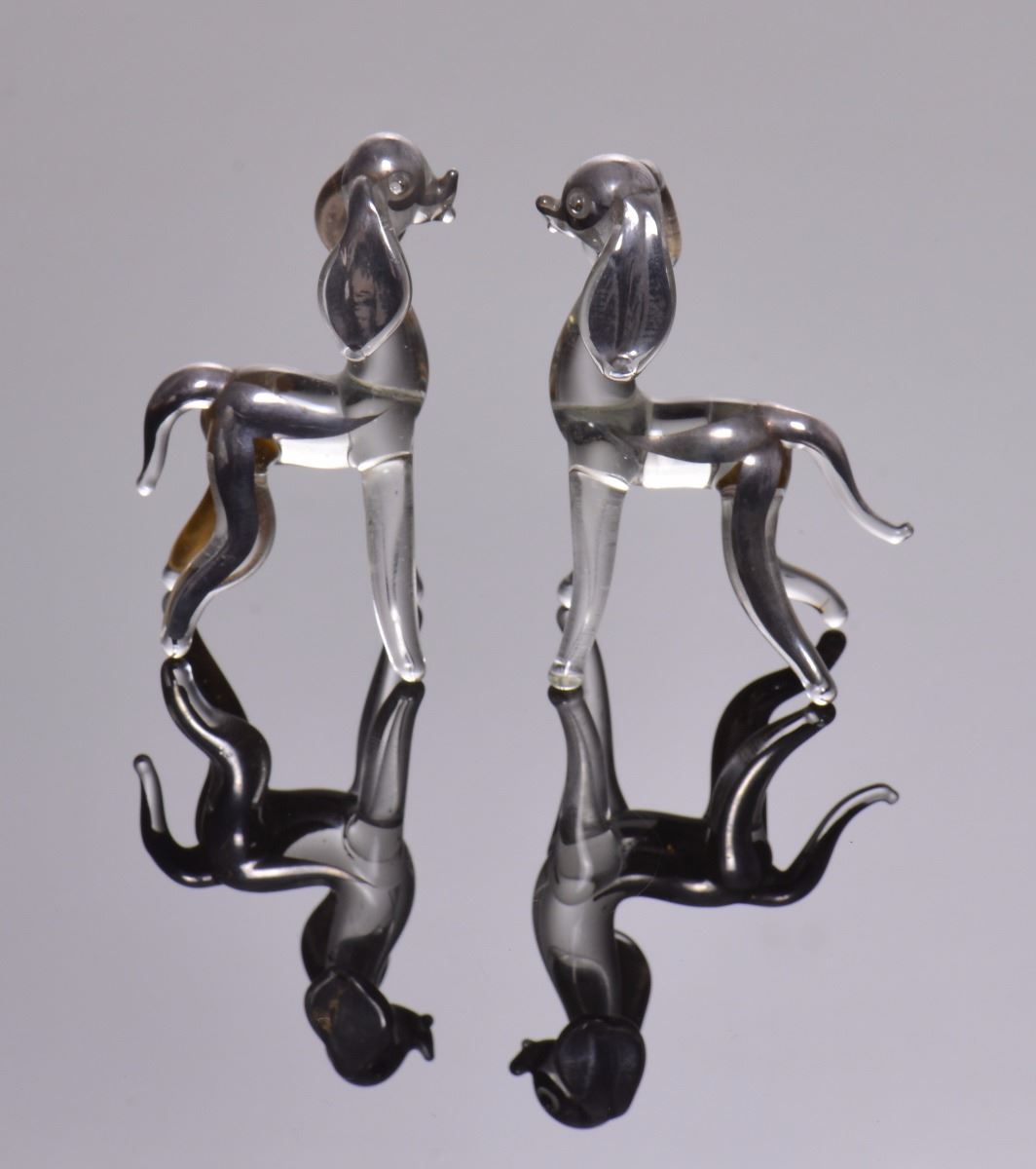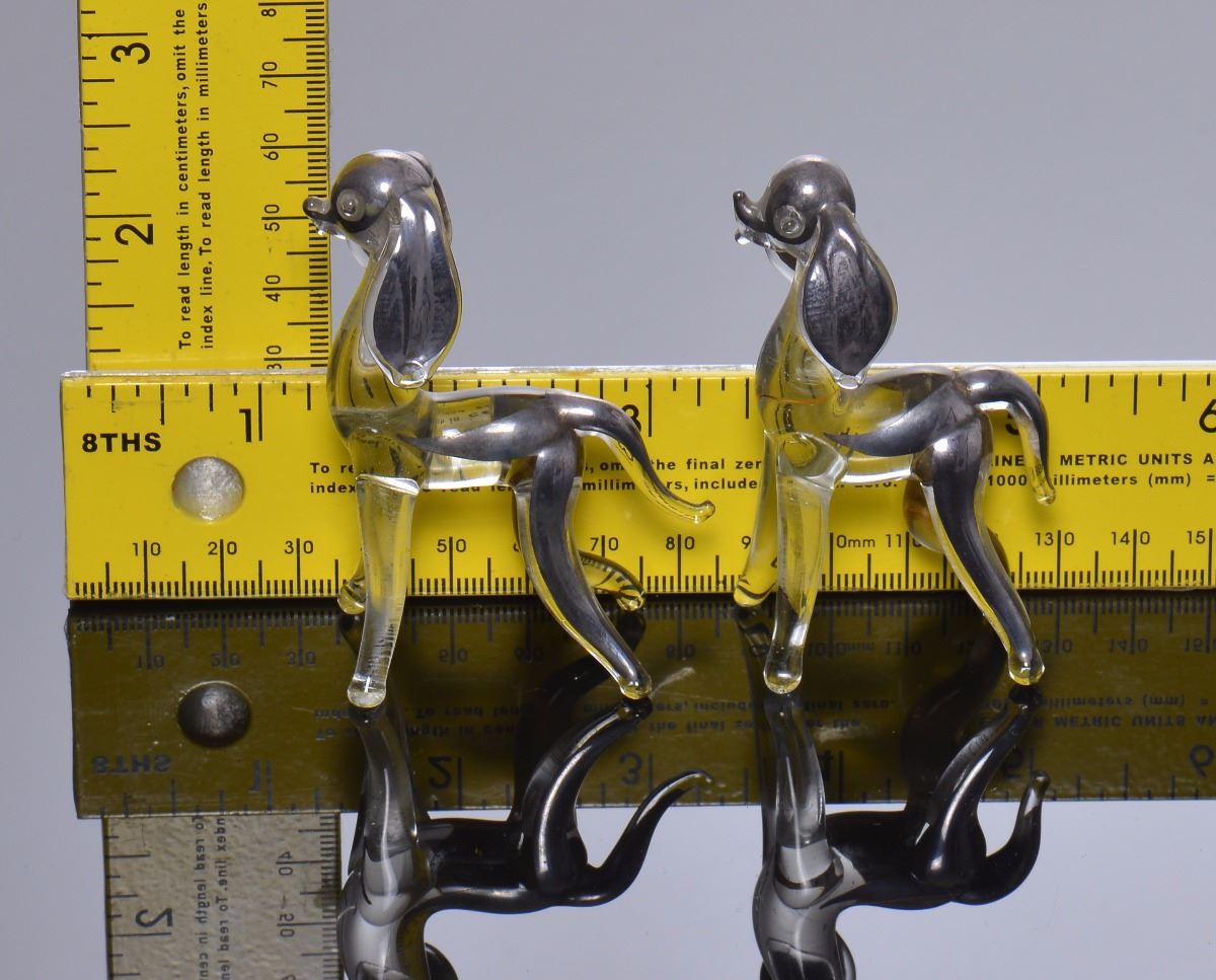 Two silver and glass dog figurines. Estimated more than 50 yrs old. Silver approximately consisting of 90% silver content. Tested Positive: Nitric Acid Chemical Scratch Test, Cloth Rub Test, Smell Test, Magnet Test. Markings: None. The reason silver needs to be combined with other metals is that it is very difficult to make great designs with just pure silver, which is very soft and malleable. A bit of hardness has to be introduced, by adding other metals such as copper. Mexico is the leading producer of silver, followed by the United States, Canada, Australia, Spain, Peru, and Russia. Silver can be found in nature in silver ore, silver ore is a mixture of other metals including silver. Many countries do not require that precious metal items be stamped. Size: See Ruler Photo. (Photos Represent The Condition Of The Lot.)
