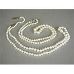 Two single row pearl necklaces, 41 and 48cm long, both with 9ct clasps, one set with diamonds Est. 150/200