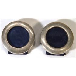 Two small silver circular photo frames