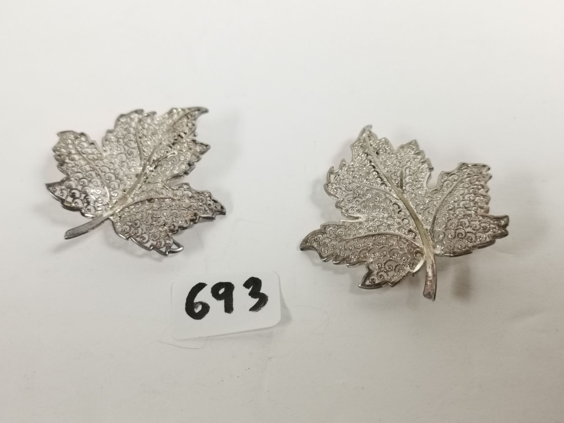 Two sterling silver maple leaf brooches, made in Germany