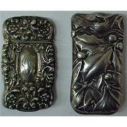 Two sterling silver match safes, one 2 1/2" with all over floral design and initialed; one 2 5/8" with holly leaf and berry design, both marked sterling silver