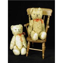 Two straw filled teddy bears. 23cm high, and a dolls Windsor chair Est.100/150