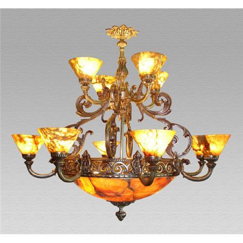 The frame of this two tier alabaster chandelier is bronze with a lovely and elegant pattern. The alabaster is the superb quality.It will be shipped in two crates, one with the alabaster component the other one with the bronze component. Some assembly will be required. The shipping cost within USA will be $ 175.00.Due to the nature of alabaster stone the pictures may not accurately represented the color and pattern of the alabaster. It will take 4 to 5 weeks to deliver.
