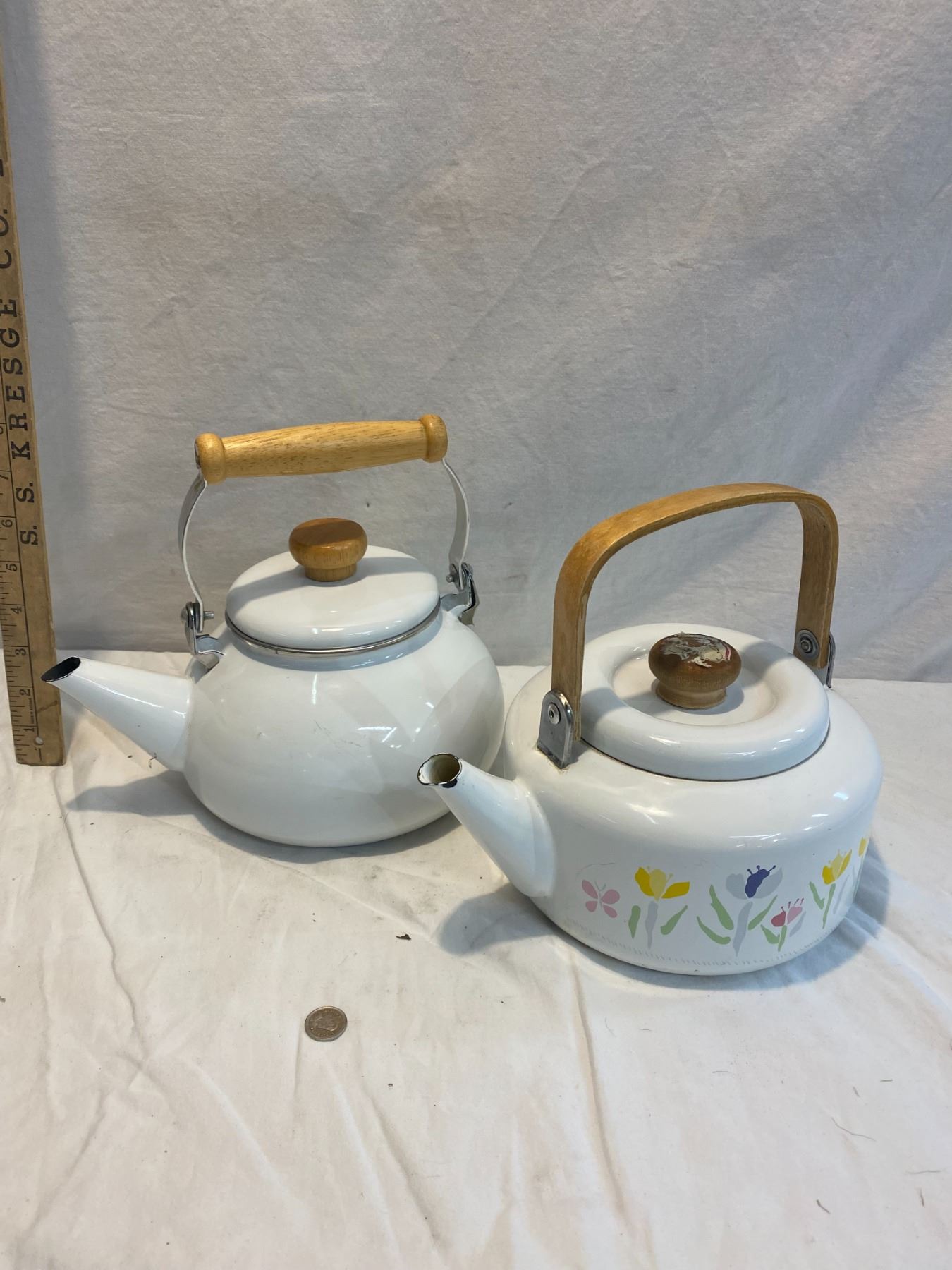 Two tin enamel kettle